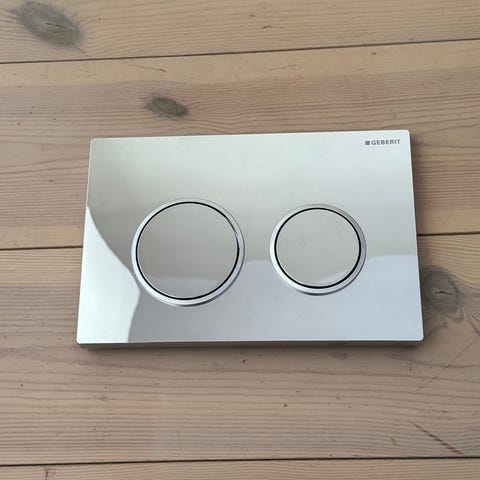 En spolknapp från TappWell i krom utförande, den passar till Geberit Duofix Sigma, Geberits WC-element Sigmaserien.