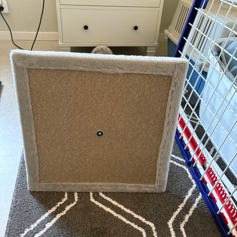 En leksak till katt där katten flyttar små delar på brädan för att komma åt godis. Vår katt gillade leksaken jätte mycket, speciellt under vintern när den var yngre. Nu föredrar katten att vara ute och leker inte längre med leksaken. Den har legat oanvänd 2 år.