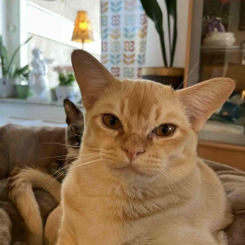Han är en otroligt social och kärleksfull katt som verkligen tycker om att vara nära sin familj. Han älskar att följa efter dig runt i huset och vill gärna vara med i allt du gör. På morgonen brukar han sitta bredvid när jag fixar mig, och i köket sitter han gärna med när man lagar mat. Han är inne katt och har aldrig varit ute så han är perfekt för lägenhets boende.