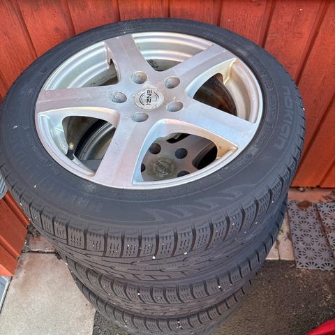 Däcken är i dimension 205/55 R16 och har bra mönster kvar då dem är inköpta i vintras.
