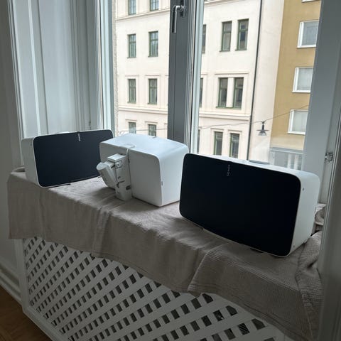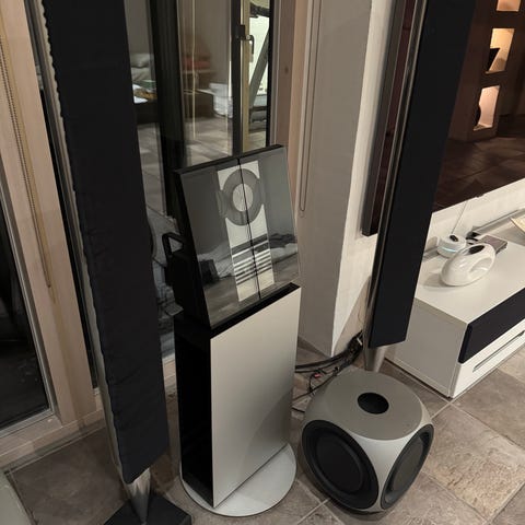 Philips hemmabiosystem med flera högtalare och separat subwoofer, även fjärrkontroll ingår. det består av en central enhet med olika anslutningar på baksidan, bland annat högtalarutgångar och ljud-/videoingångar, samt fristående högtalare och en aktiv subwoofer, inkl. fm och am radio, cd spelaren är lynnig stannar efter några sek. kanske rengöring behövs ( jag vet inte)för grejorna har stått oanvända ett tag, grejorna säljes i befintligt skick, skickas ej. 400:- eller bud