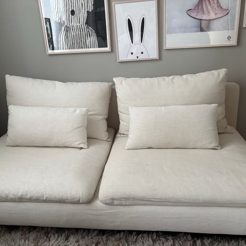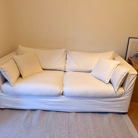 Inga barn, inga djur och inga fläckar! Jättefint skick och trevligt ljust beige tyg som funkar i många hem.