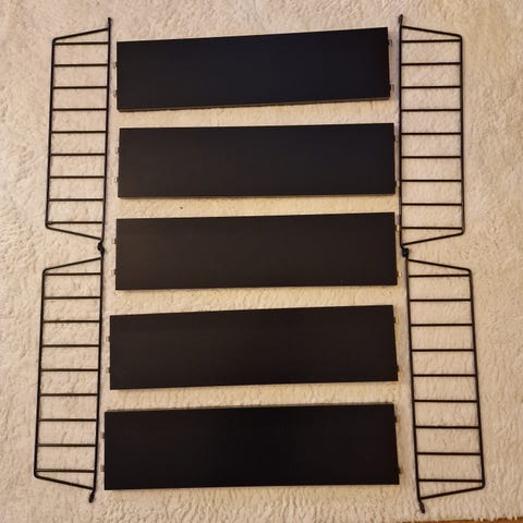 Två stycken String Pocket i skick som ny. Har monterats som kombination varav en gavel och ett hyllplan helt oanvända.