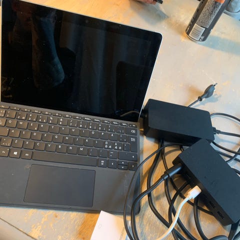 Microsoft bärbar dator i svart utförande. Enheten har löstagbart tangentbord och pekskärm, lämplig för vardagligt arbete, studier och surfning. Passar för användning både som laptop och surfplatta beroende på behov och programvara som installeras.