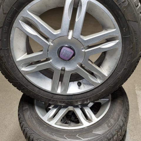 Sommardäck i dimensionen 185/65 med tillhörande Fiat aluminiumfälgar på 15".