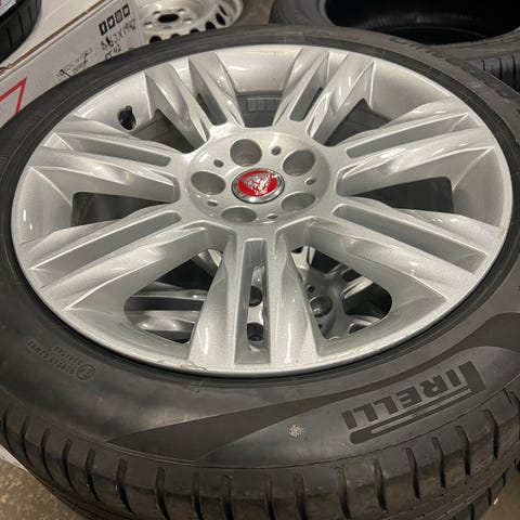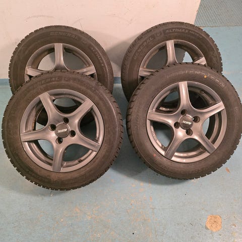Däcken har rullat under 1,5 säsong och är i gott skick. Fälgarna är i okej skick, men har viss missfärgning och visst lacksläpp på några punkter, se bilder.