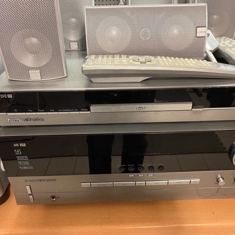 Yamaha RX-661 5.1 komplett system med högtalare, subwoofer i svart pianolack och
