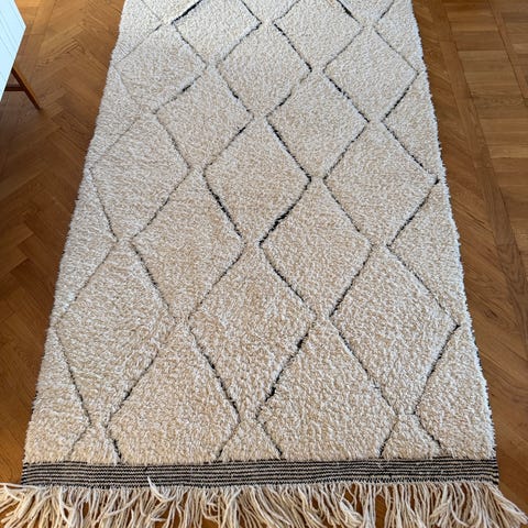 160x230 cm Natur 85% ull / 10% bomull / 5% fibre.