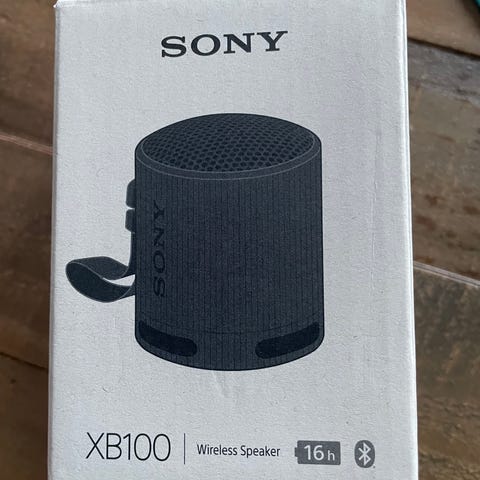 Sony SRS-XB33 bärbar högtalare med trådlös uppkoppling via Bluetooth och NFC. Modellen har IP67-klassning med vattentäthet ned till 1 meter. Högtalaren väger cirka 1,1 kg och har ungefärliga mått 24,6 cm i bredd, 10,6 cm i djup och 9,7 cm i höjd. Anslutning sker trådlöst eller via USB. Lämplig för mobil, surfplatta och andra enheter som stödjer Bluetooth-ljuduppspelning.