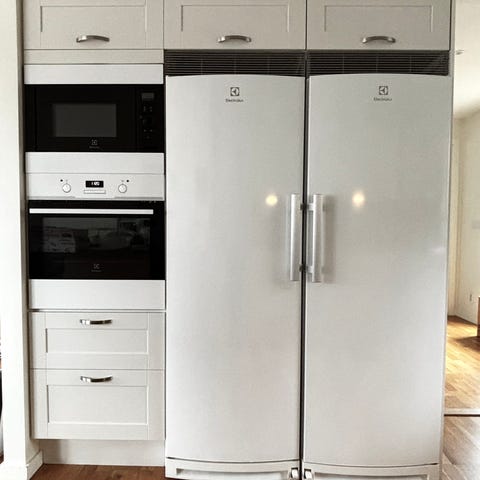 Frys med 3 lådor + hylla, kyl med glashyllor.