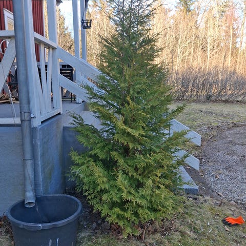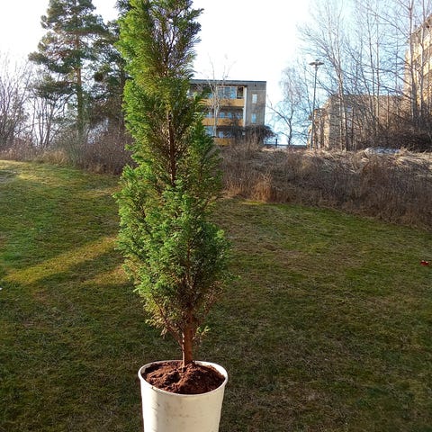 Tre stycken stora thuja/cypress. Passar som insynsskydd, avgränsning av tomt eller prydnadsväxt i trädgård. Växten är vintergrön och behåller sin färg större delen av året. Lämplig att plantera i grupp som häck eller enskilt som solitärväxt beroende på önskat utseende och funktion i trädgården.