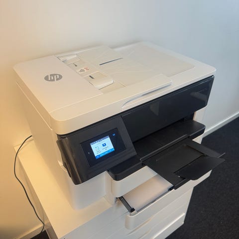 Multifunktionsskrivare från HP med färglaser – ett riktigt monster som egentligen är gjort för hög utskriftsvolym på företag. Skriver ut i färg samt skannar och kopierar. Perfekt för hem eller kontor.