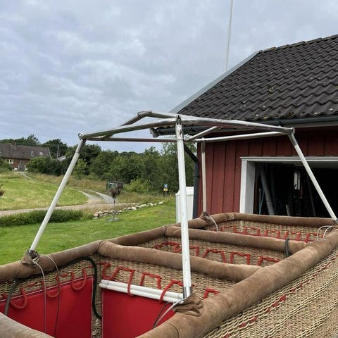 Luftballong korg med brännarutrustning rotting brun röd