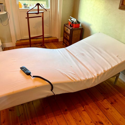 Ställbar säng med fjärrkontroll från Jysk. Inköpt i oktober 2025. Använd endast ca en månad.
