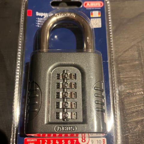 Abus nyckelbox med kodlås för förvaring av nycklar. Boxen är avsedd för väggmontering och har en fyrsiffrig kombinationskod på framsidan. Insidan rymmer flera nycklar och är utformad för att hålla dem samlade på en plats.