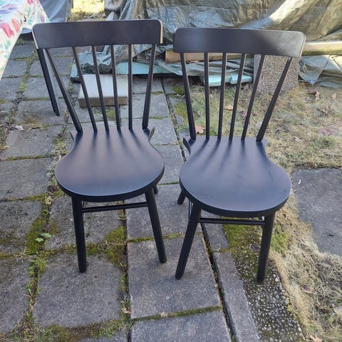 Fyra vackra pinnstolar. Liknar Lilla Åland. Köpta hos Royal Design för ca 2 år sen. Vacker blå färg med lite skrapmärken. Ryggen ("överliggaren") har vi limmat om. Finns i Mölndal. Pris 500 för alla 4.