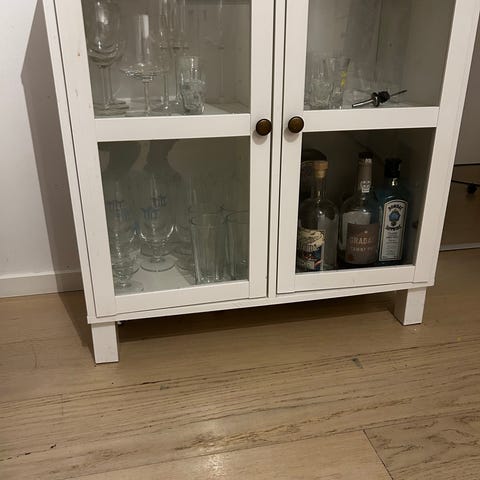 Vitrinskåp vägghängt vitt med glasdörrar och belysning