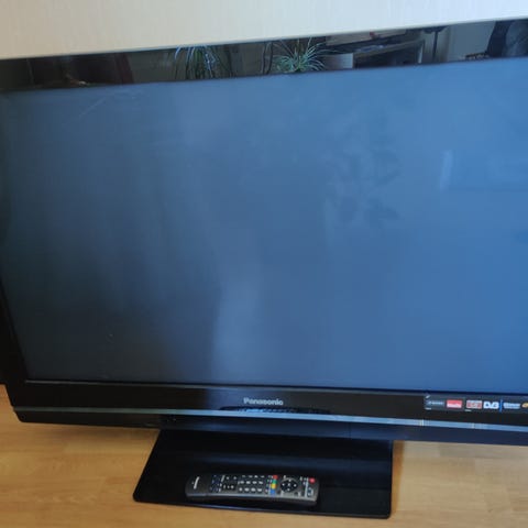Panasonic Plastma Tv med fjärrkontroll och bruksanvisning.
