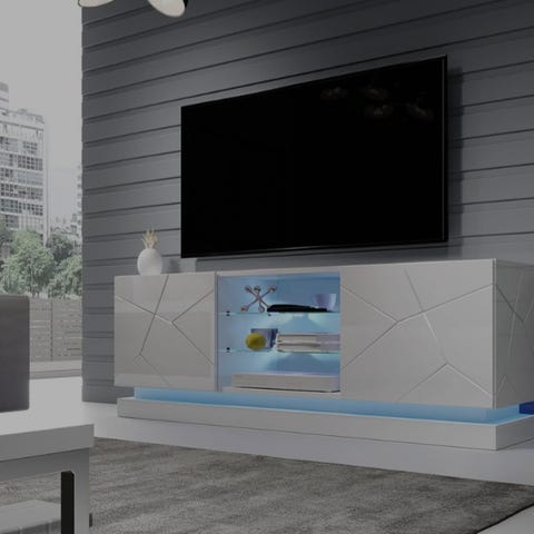 MFC-material med svart färg som är reptåligt och smutsavvisande, modernt och stilfullt.Det öppna glashyllan och skåpet ger gott om förvaringsutrymme för dig.Du kan lägga böcker, CD:ar och CD-spelare på tv-skåpet med stort utrymme.LED-färg i skåpet är justerbar med fjärrkontroll.Mått på kommodet i mm (BxDxH): 135 x 39 x 30 cm