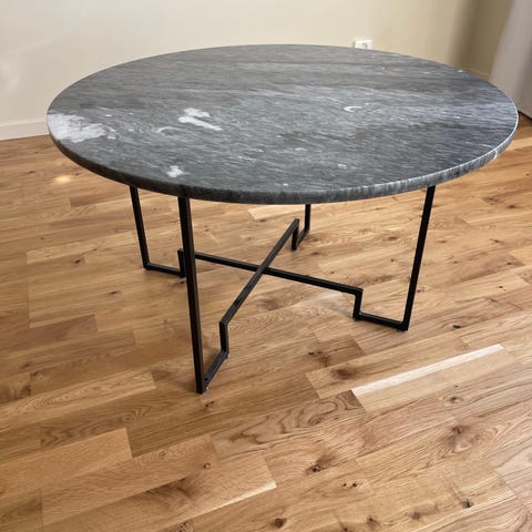 Soffbord med marmorskiva. Skivan har många tecken på användning, benen är i väldigt fint skick!