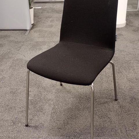 Edsbyn stol i svart. Stolen har en fyrbent kromad snurrfot i metall. Lämplig som kontorsstol eller mötesstol. Finns 3st. 350kr/st