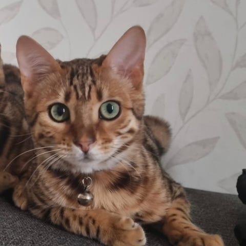 Renrasiga bengaler med stamtavla, en hona och en hane, syskonpar. Mycket vana vid barn. Hanen är hundlik och mycket social och honan är mer kattlik. Båda trivs att vara mycket med varandra, tvätta varandra, sova ihop och leker ihop flera gånger om dagen. Extremt välfungerande katter utan avvikande beteenden. Båda är kastrerade.