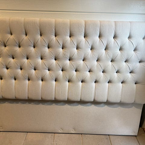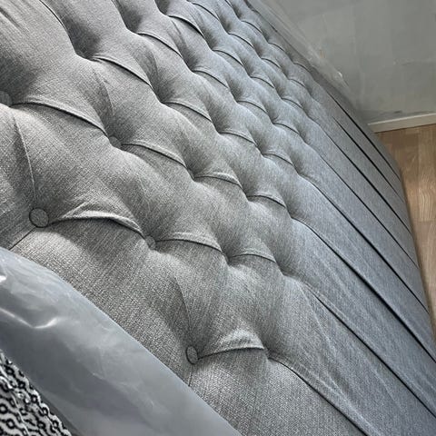 sänggavel grå textil