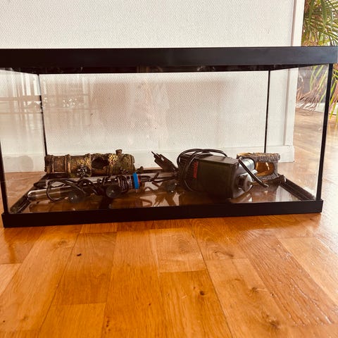 Akvarium i 112 l i glas med rektangulär form. Akvariet har transparenta glasväggar med svarta kanter. Passar för användning som akvarium eller terrarium beroende på behov och inredning. Placeras på plan yta som tål vikten av vatten och inredning.