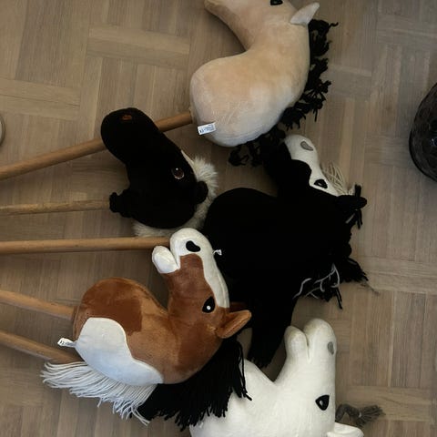 Säljer en samling av 12 käpphästar.