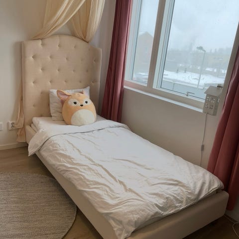 Säljer en säng med sidoskydd, perfekt för mindre barn. Använda till 2 barn så finns skav, men inget som inte kan målas till av den händige. Är själva trästommen som säljs, bäddmadrassen är inte i bra skick. Storlek 90x200