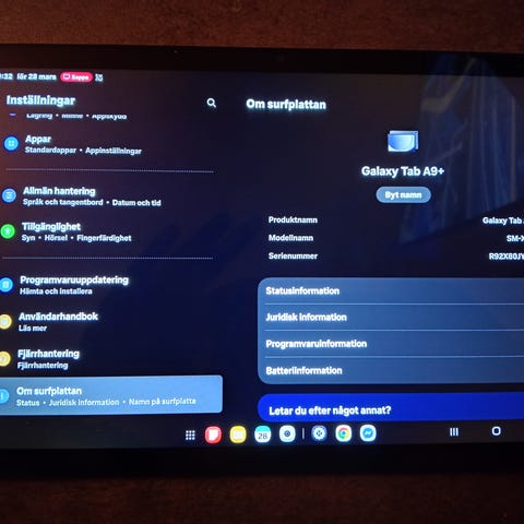 Säljer min Samsung Galaxy Tab A9 i mycket fint skick. Väldigt lite använd och fungerar perfekt.