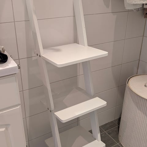 Hylla från Mio. Vissa tecken på användning finns men är generellt i bra skick. Djupet på översta hyllplan är 15 cm samt 30cm på det nedersta hyllplanet.