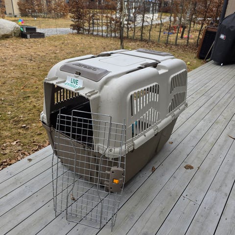 Stabil och rymlig transportbur från Petmate, modell Vari Kennel Ultra. Perfekt för större hundar och trygg transport i bil eller hemmet.