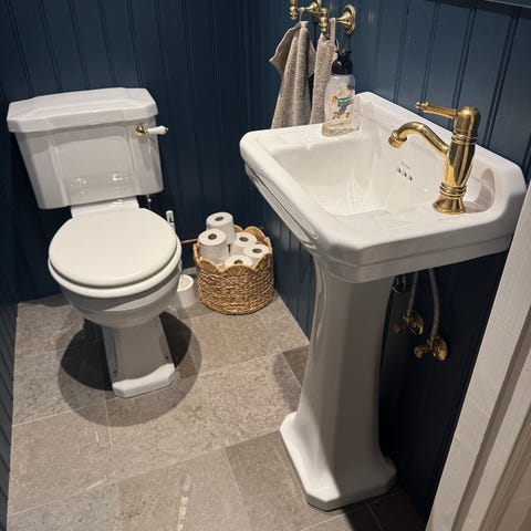 Burlington Victorian tvättställ 56 cm med metallställning tillsammans med burlington blandare och bottenventil.