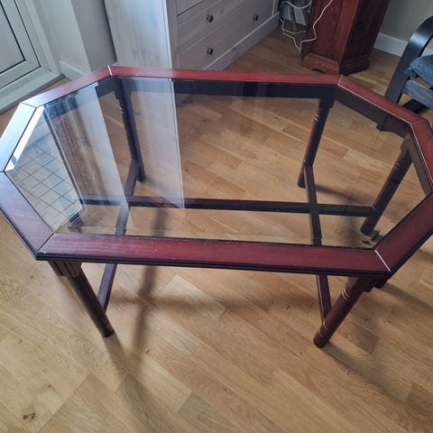 Bordet är synligt använd. Den händige kanske kan slipa och olja om på nytt. Vid snabb affär säljer jag bordet något billigare.