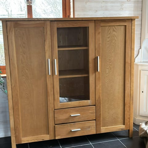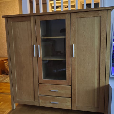 Ett rymligt skåp med en glasdörr i mitten. I bra skick. Hämtas i Eslöv