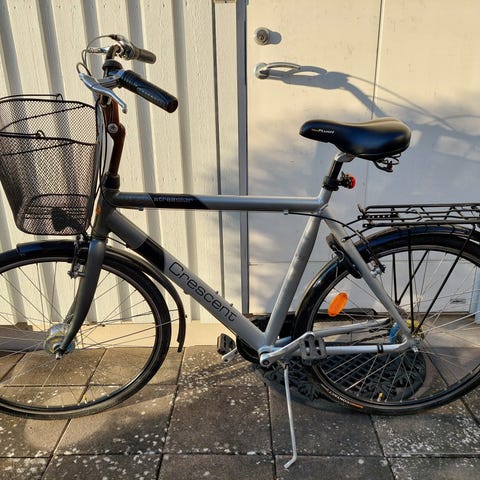 Crescent stadscykel för unisex med 28" hjul. Cykeln har klassisk rammodell med upprätt körställning, pakethållare bak, stänkskärmar och kedjeskydd. Utrustad med handbroms fram och navbroms bak enligt bilderna samt belysning fram. Passar för vardagscykling i stadsmiljö och kortare pendlingsturer.