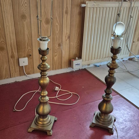 Två st 60-tals lampor i fint skick sannolikt svenska. Mässing. Höjd 45 cm. Ny el.