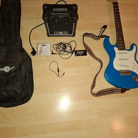 Elgitarr i bra skick, finns viss skyddsplast kvar än så inte mycket använd.