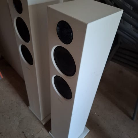 Argon Alto 55 golvhögtalare i vit finish. Högtalarna är passiva och ansluts med högtalarkabel via skruvterminaler på baksidan. Modellen är avsedd för användning i hemmabio- eller stereosystem och levereras som ett par. Frontskydd i tyg kan monteras eller tas av beroende på önskat utseende och skydd av elementen. Passar för placering i vardagsrum eller liknande miljöer där fristående golvhögtalare önskas.