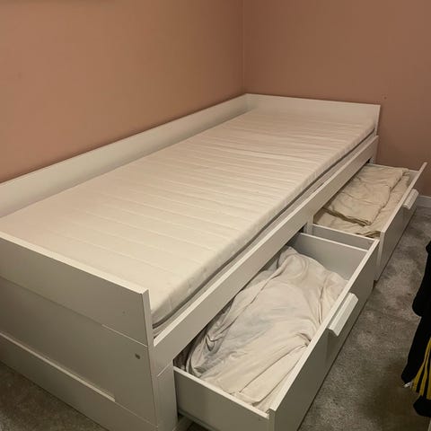 Madrassen ingår och är i mycket bra skick. Den har alltid använts med madrasskydd.