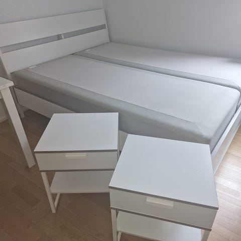Nästan ny säng 160×200 cm med madrass och valfri bäddmadrass. Sängen är använd mindre än ett år och är i mycket bra skick. Två praktiska lådor under sängen ger extra förvaring.