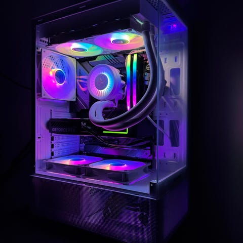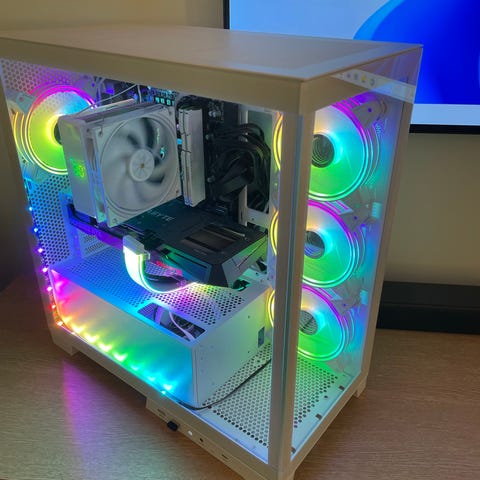 Utrustad med en kraftfull 360mm AIO vattenkylning som håller temperaturerna låga även under tung belastning. Bygget har en clean och stilren vit RGB-look som passar perfekt på skrivbordet.