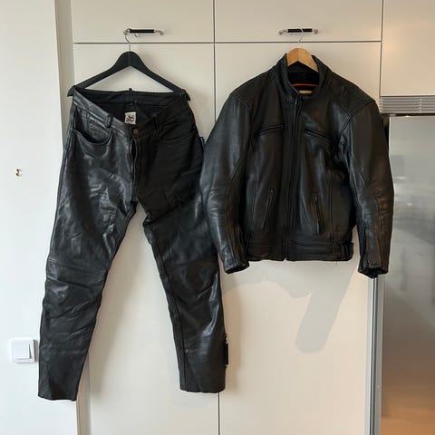 Motorcykelbyxa skinn och Mc jacka