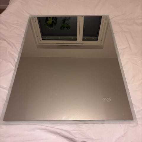 Rund spegel 60 cm i diameter med LED-belysning och svart ram. Spegeln har inbyggd belysning runt kanten som ansluts med sladd. Passar exempelvis i badrum, hall eller sovrum där extra belysning önskas vid spegeln. Helt ny säljes pga felköp pris 4000kr finns i centra Oskarshamn