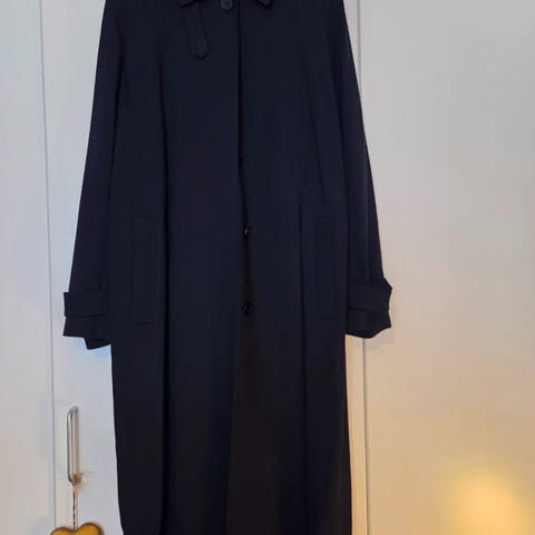 Busnel ullkappa för dam i storlek M. Kappan är svart och tillverkad i ull. Modellen har krage och knäpps framtill med knappar. Passar som ytterplagg vid svalare väder.