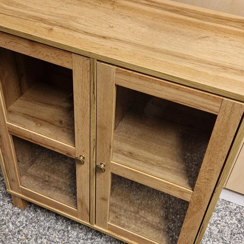 Skåpet har glas framtill, på sidorna samt en glashylla inuti.