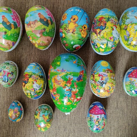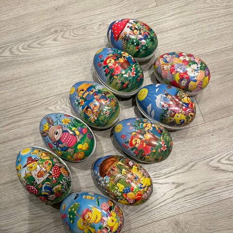 Påskägg i papp (23 cm) och metall (15 cm)
