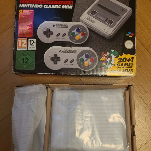 Lämplig för spelare från 7 år och uppåt beroende på spelens åldersrekommendationer. Innehåller ett urval av förinstallerade Nintendo 8-bit-spel som visas på kartongen, inga lösa spelkassetter behövs.