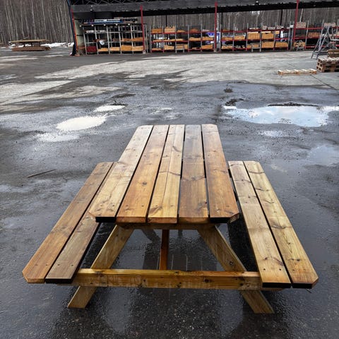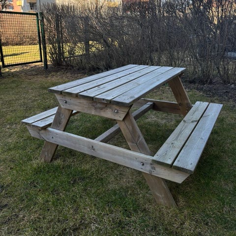 Bord och bänkar välbyggda i tryckimpregnerat virke.